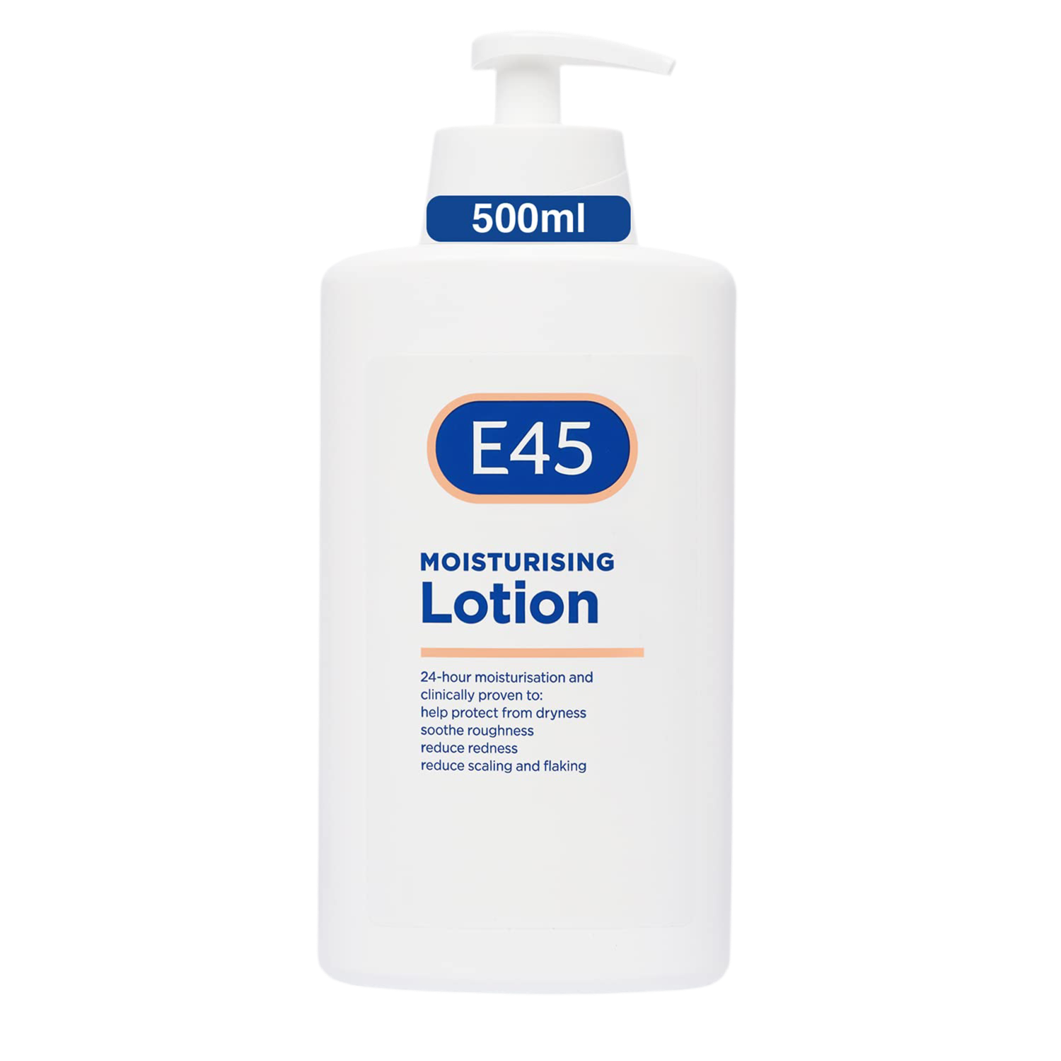 E45 Ενυδατική Λοσιόν είναι ένα φως, καθημερινή ενυδατική λοσιόν , σχεδιασμένο για όλο το σώμα, συμπεριλαμβανομένου του προσώπου. Διατηρεί ξηρό και ευαίσθητο δέρμα απαλό, εύπλαστο και βαθιά ενυδατωμένο όλη μέρα. Ιδανικό για καθημερινή φροντίδα για όλη την οικογένεια – συμπεριλαμβανομένων μωρά άνω των 3 μηνών .